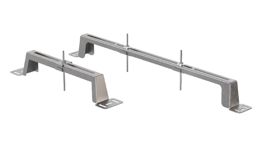 De montagebeugels worden stevig aan de aanwezige dekvloer vastgezet. De transportinlegger van de goot wordt met draadeinden aan de montagebeugel bevestigd en op de gewenste hoogte ingesteld. Na het gieten kunnen de transportinleggers en de montagebeugels weer worden verwijderd en is het rvs-onderdeel op exact de juiste hoogte vastgezet, zonder dat de scheidings- en afdichtingslagen worden beschadigd.